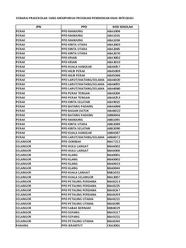 Program Pendidikan Khas Integrasi. Muat turun Senarai Prasekolah Yang Mempunyai Program. Get this location maps and gps coordinates.